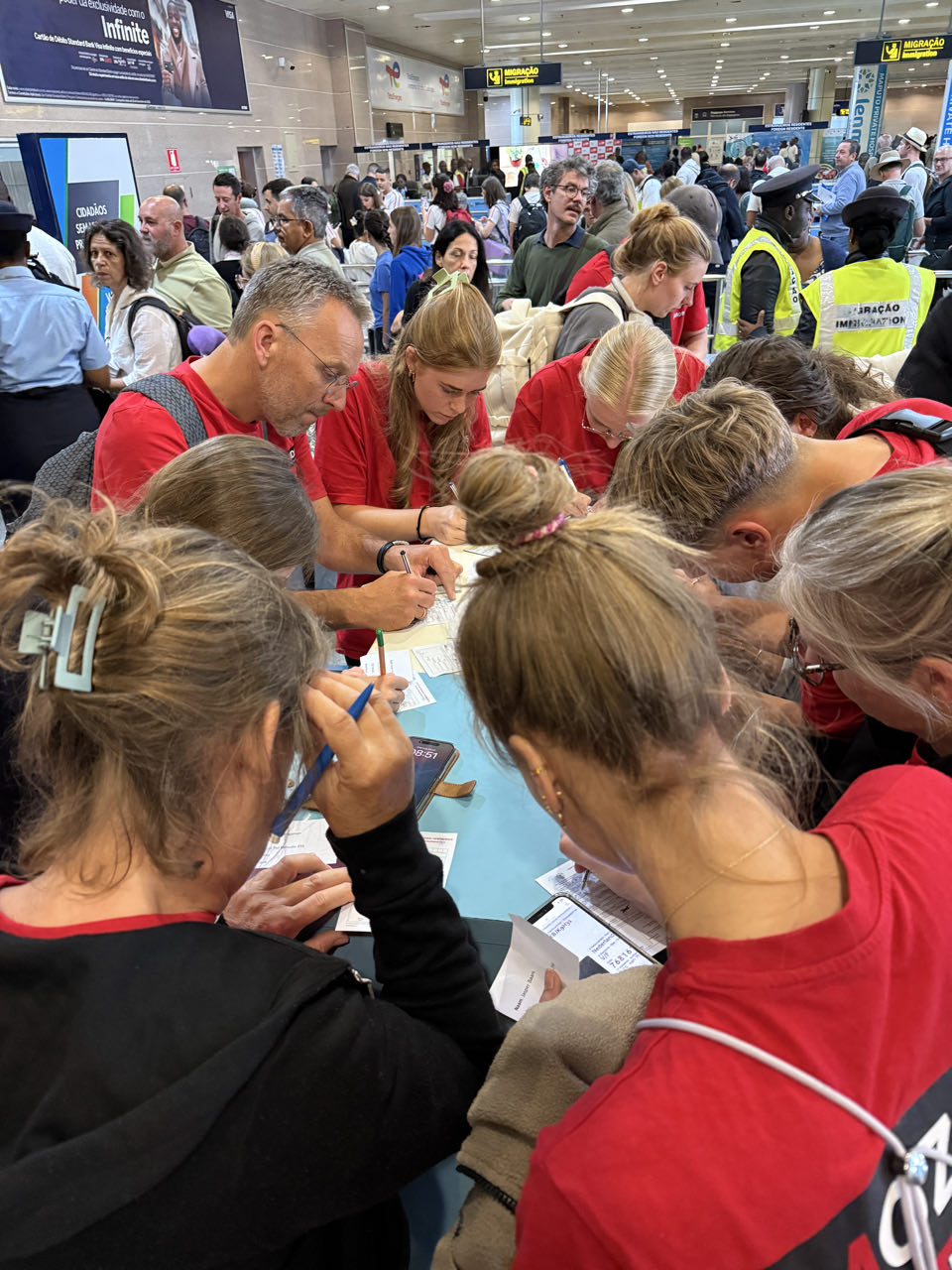 Waarna we verwelkomd werden door Wyona, Andrew, Henrique en Oscar. Zij hebben zonder twijfel gezorgd voor het meest vlekkeloze transport wat we ooit hebben gehad. Waar we in het eerste jaar ruim 4 uur gewacht hadden op de bussen en alles, waren we vandaag in 10 minuten klaar.